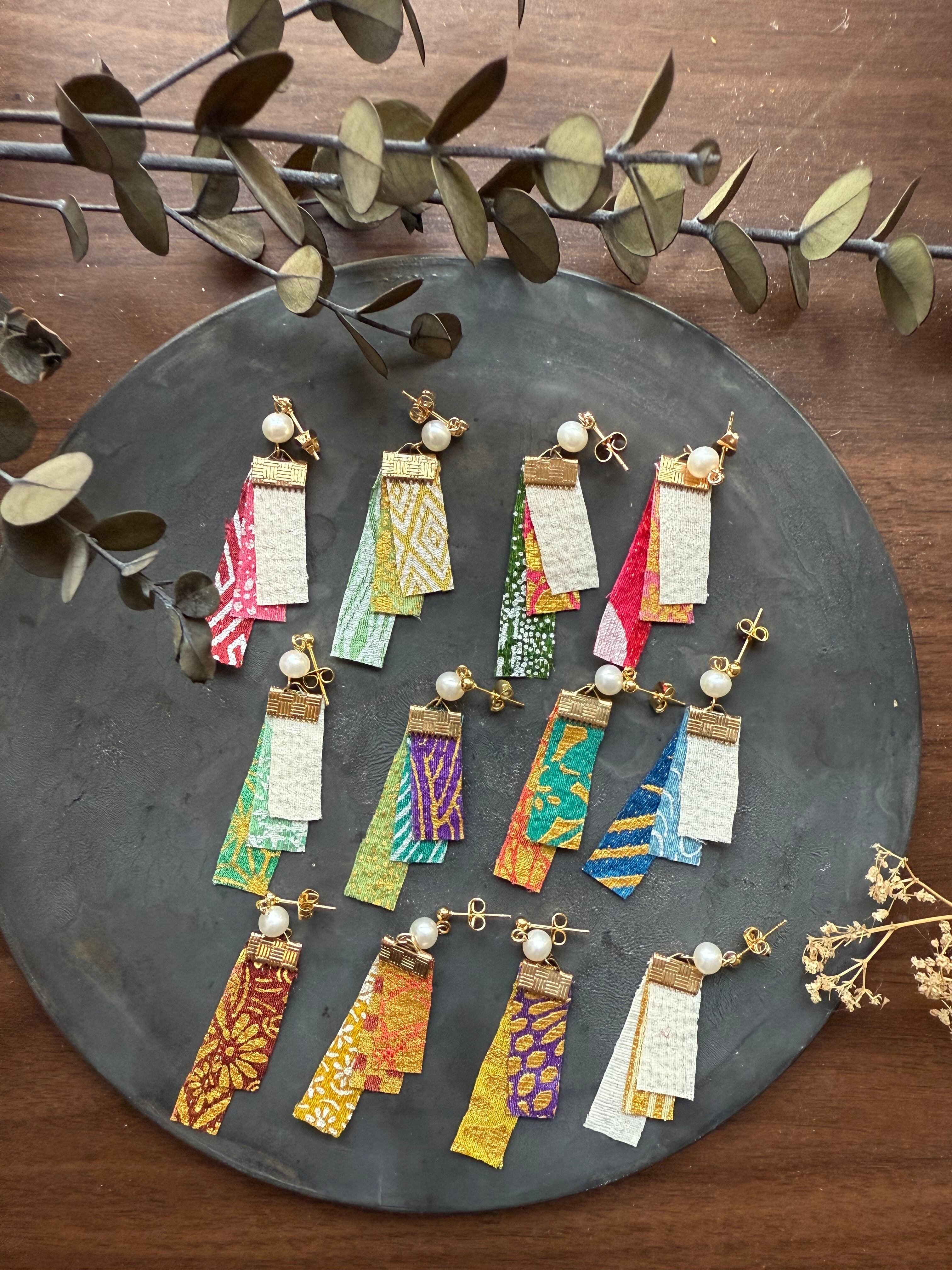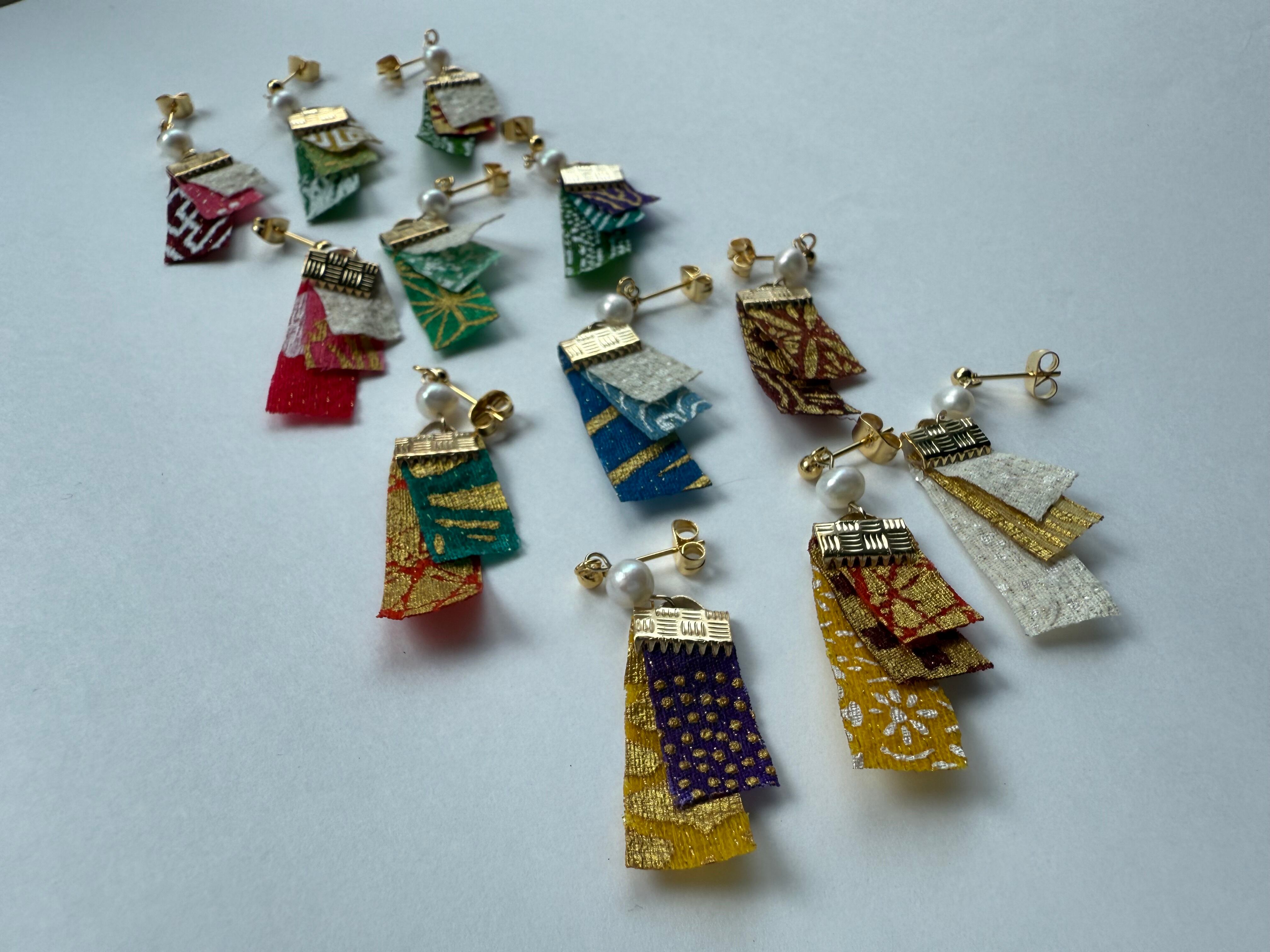 京友禅染で一点ずつ染めた耳飾りです。