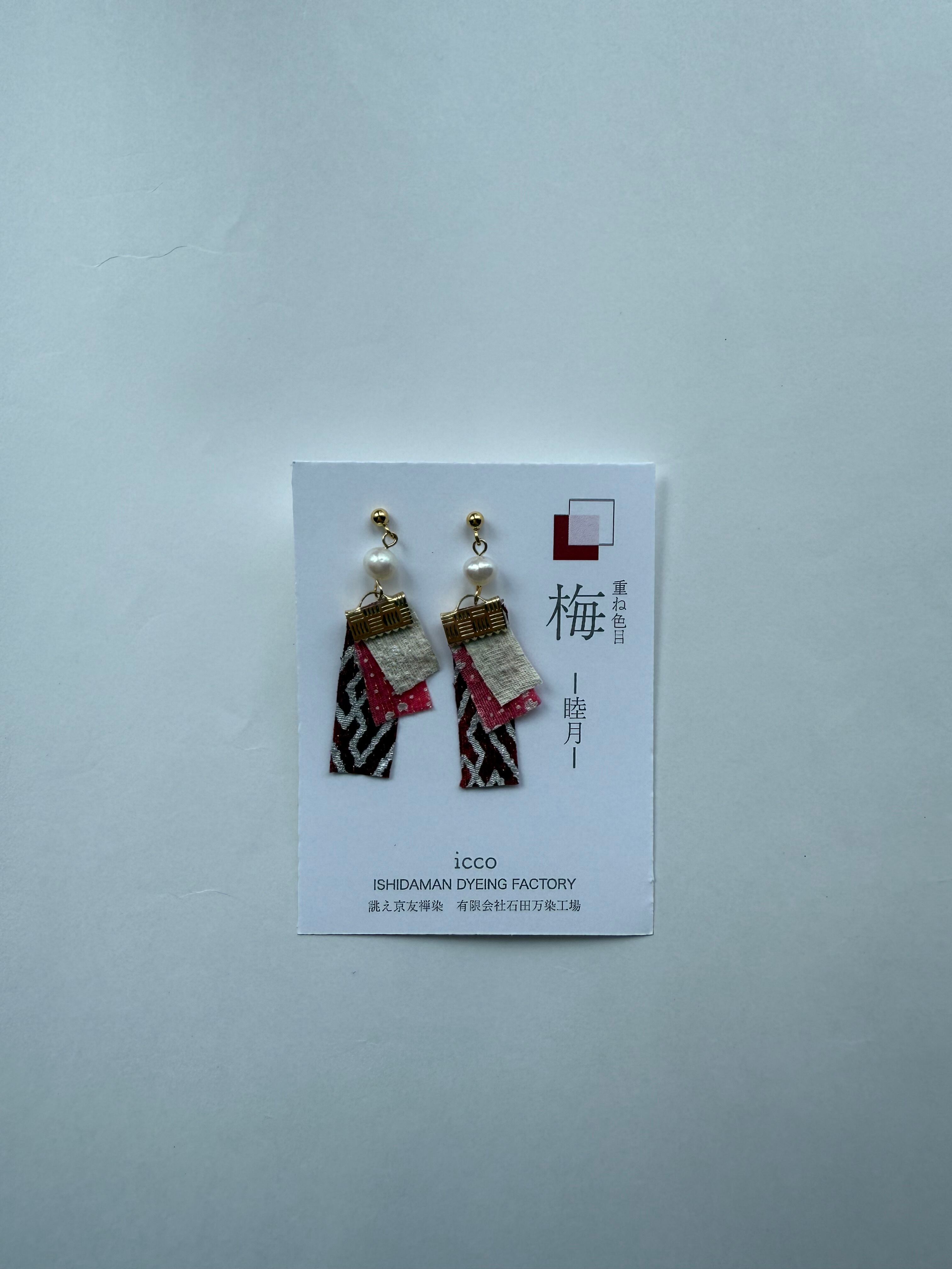 重ね色目ピアス・イヤリング/梅(睦月) Kyo-Yuzen earrings with the ancient color combination of layered kimon・plum・Jan. | Ishidaman Dyeing Factory