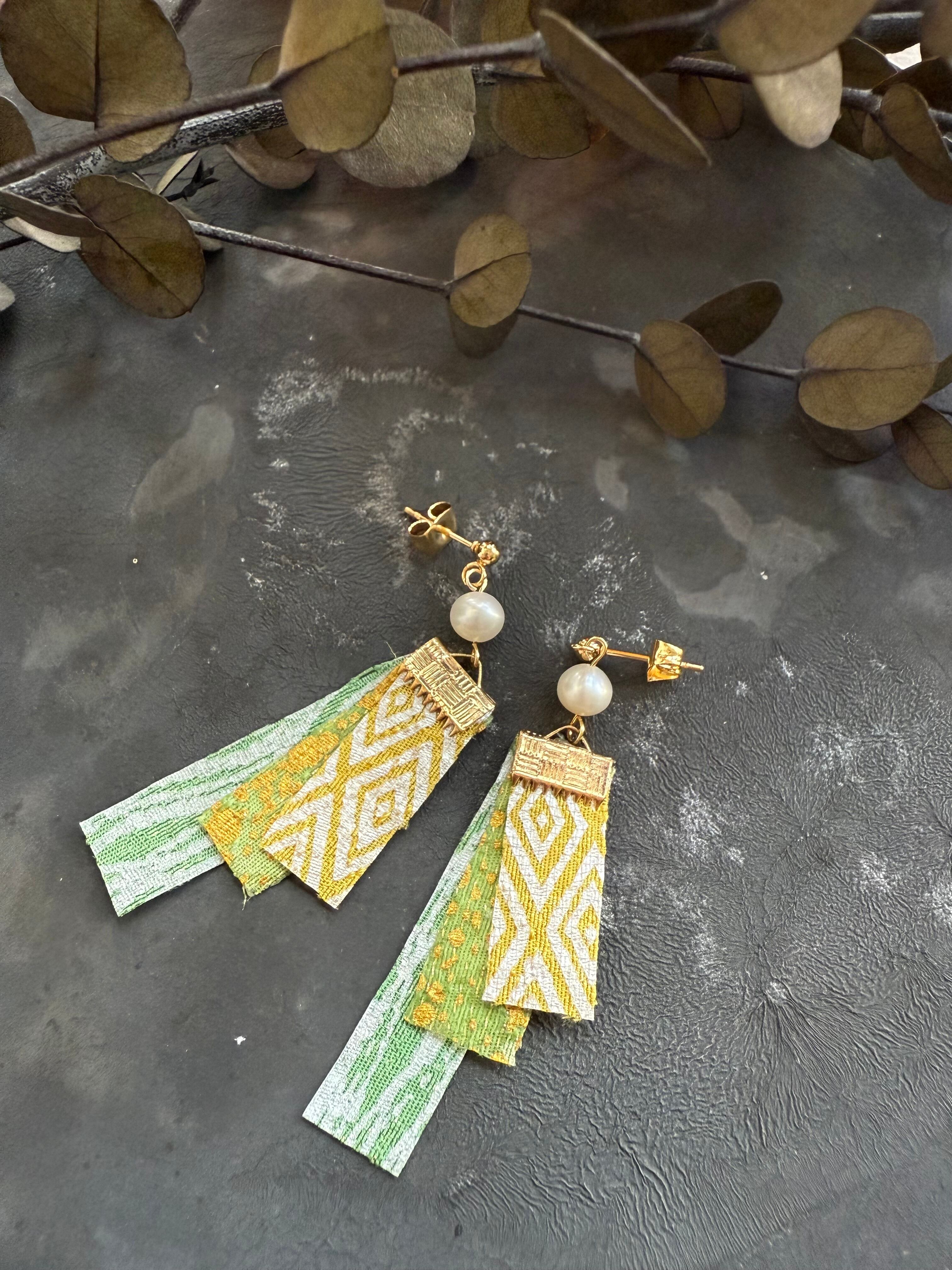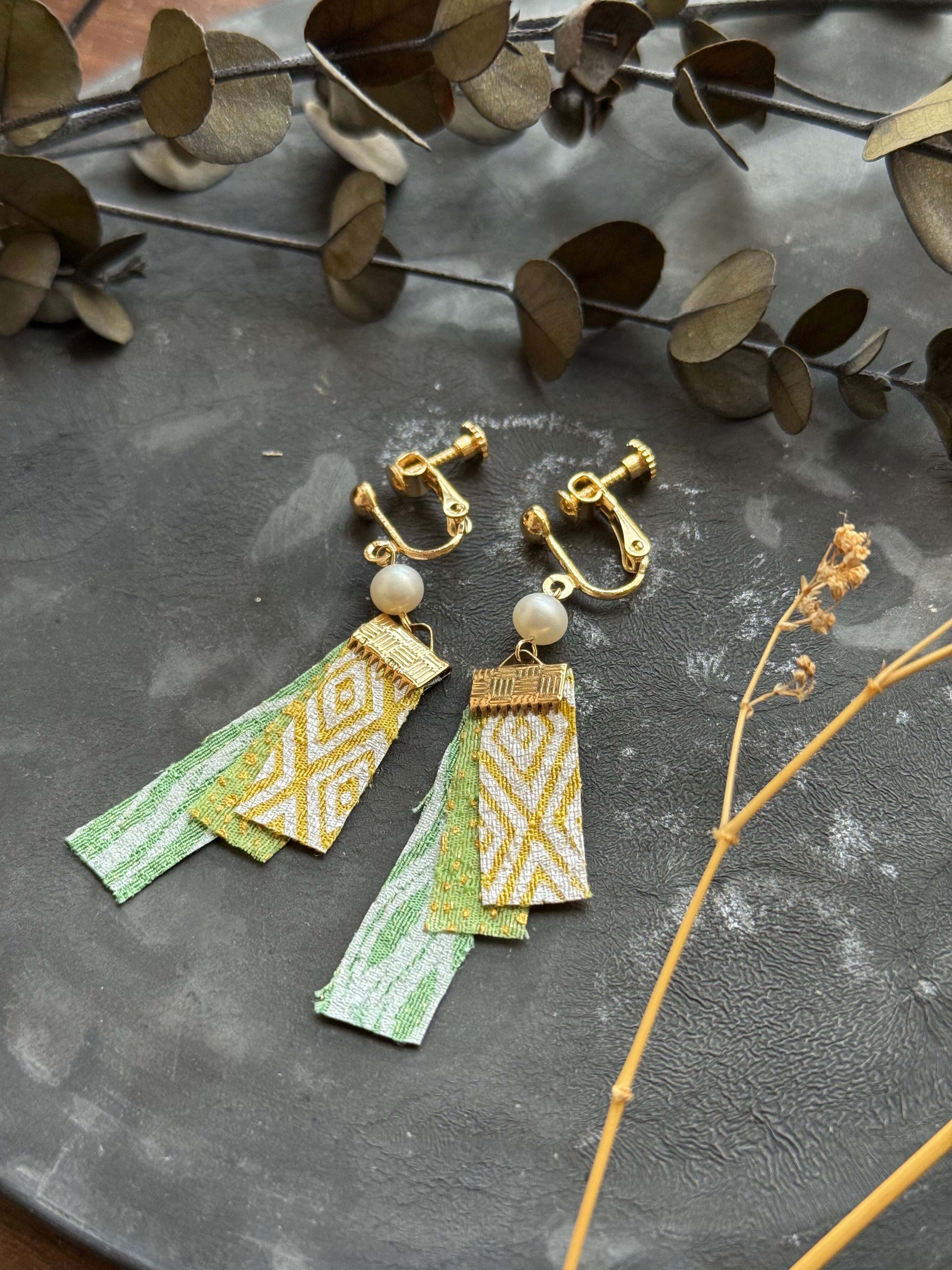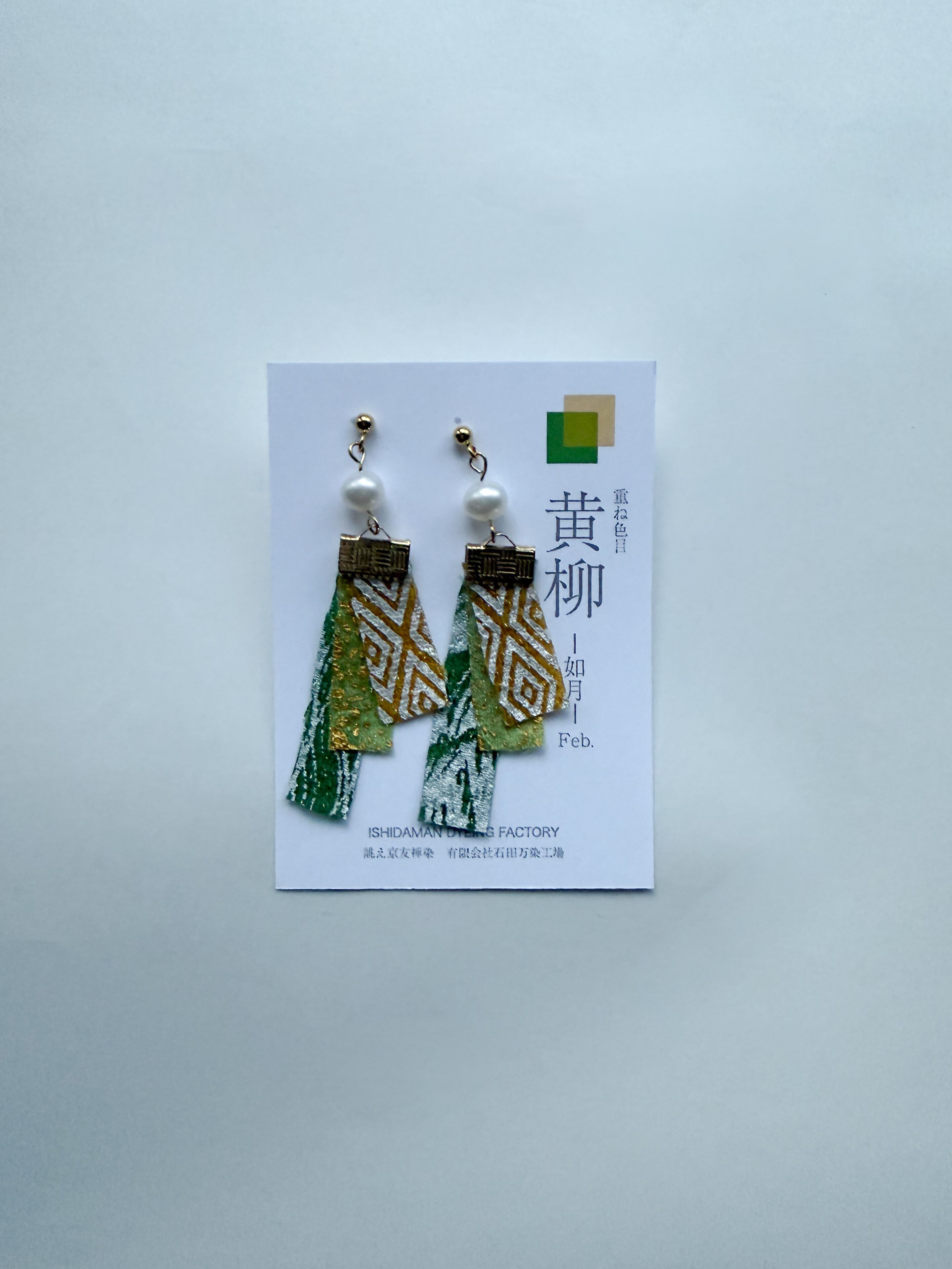 重ね色目ピアス・イヤリング/黄柳(如月) Kyo-Yuzen earrings with the ancient color combination of layered kimon・Golden Willow・Feb. | Ishidaman Dyeing Factory