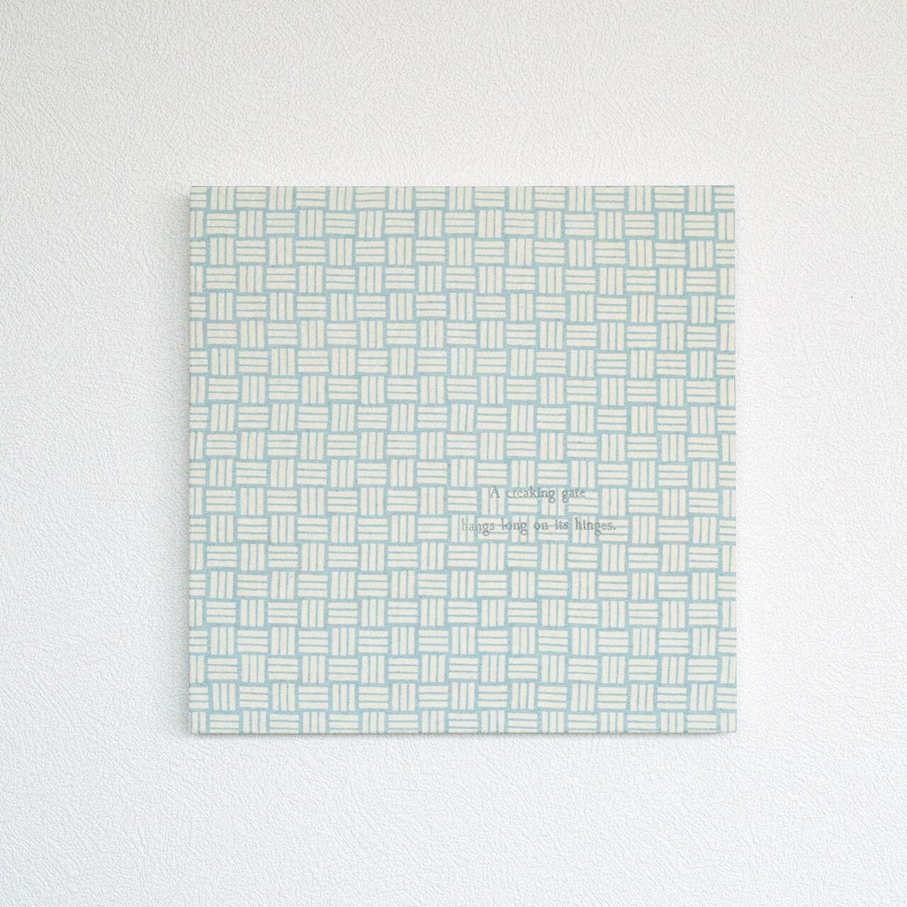 友禅染で染めた反物生地に英語のことわざを加え、お部屋に合うよう和モダンなパネルにしました。